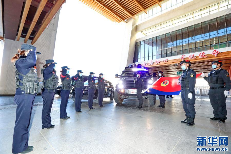 1月10日, 拉薩火車(chē)站派出所“女子格?;ā本M佇立在警旗前宣誓。