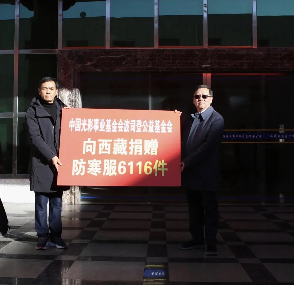 2021年1月8日,“中國(guó)光彩事業(yè)波司登防寒服情暖西藏”捐贈(zèng)儀式在拉薩隆重舉行。西藏自治區(qū)黨委統(tǒng)戰(zhàn)部副部長(zhǎng)、西藏自治區(qū)工商聯(lián)黨組書記王念東,波司登集團(tuán)黨委副書記、波司登公益基金會(huì)理事長(zhǎng)朱鈞,西藏自治區(qū)工商聯(lián)黨組成員、副主席陸紅軍,西藏自治區(qū)工商聯(lián)黨組成員、副主席、秘書長(zhǎng)、西藏自治區(qū)光彩事業(yè)促進(jìn)會(huì)秘書長(zhǎng)張蓉出席了捐贈(zèng)儀式。