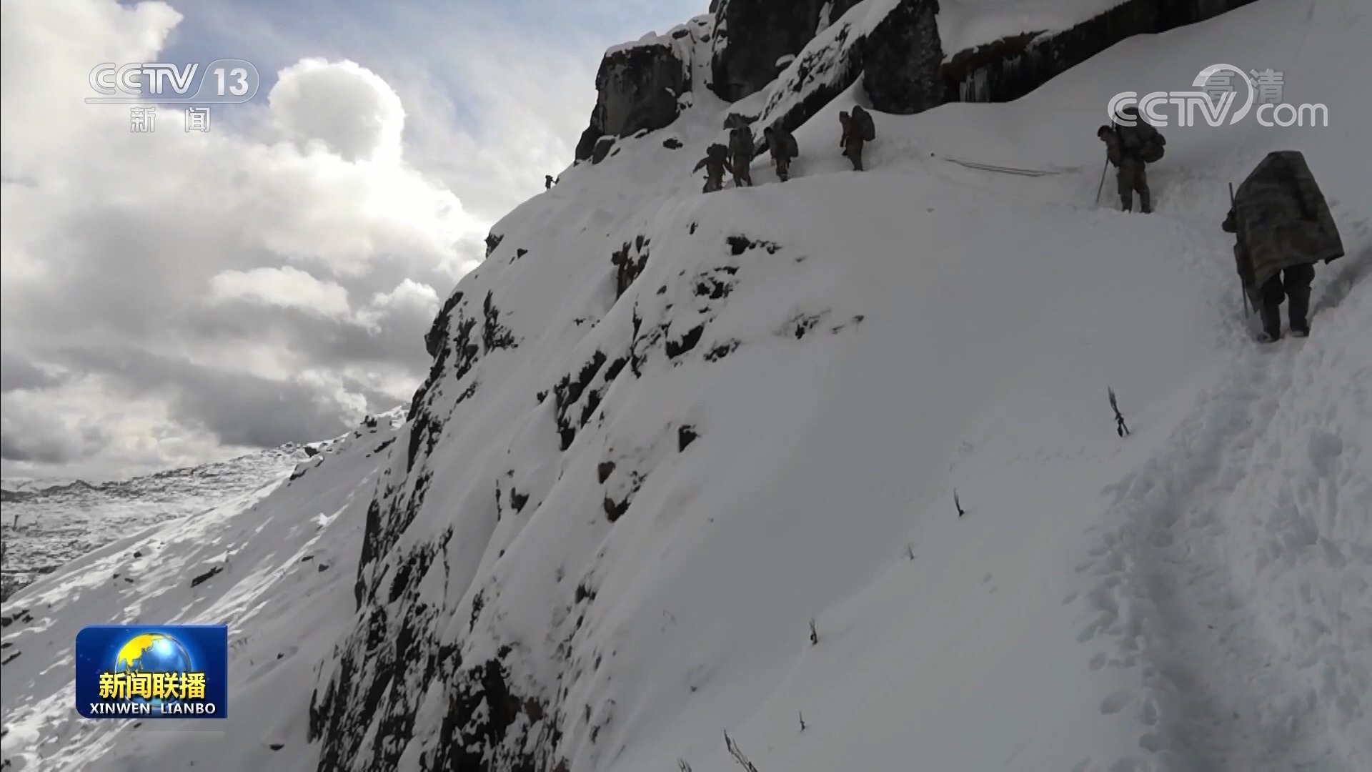 隨著海拔的升高,官兵們來到了巡邏路上最危險的雪山虎口崖路段。