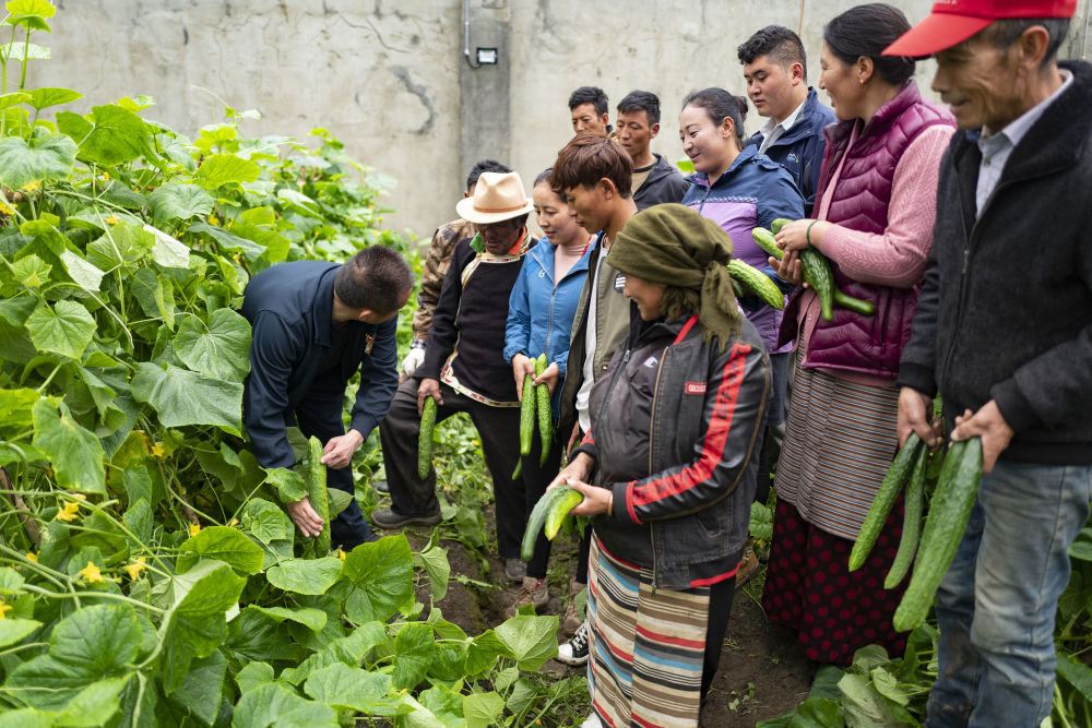 玉麥鄉(xiāng)群眾在蔬菜大棚里學習種植蔬菜技術(shù)(2020年7月30日攝)。 新華社記者 普布扎西 攝