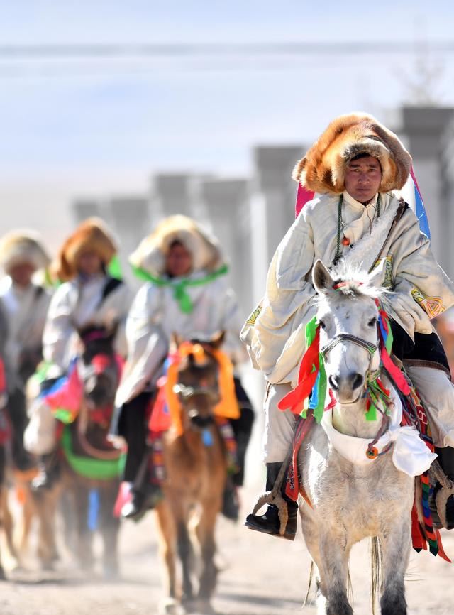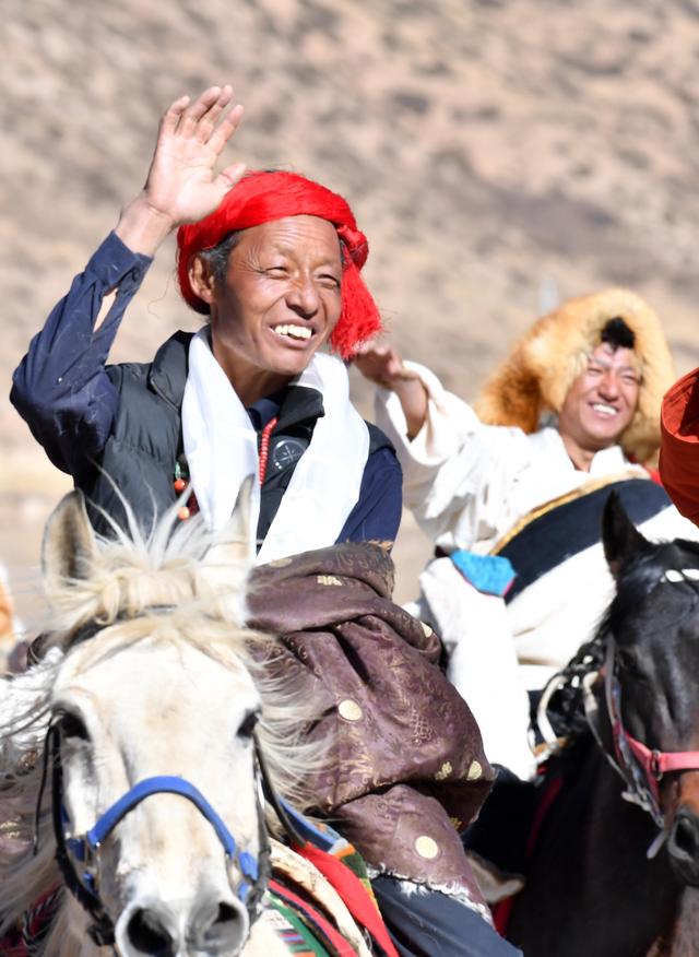2月12日,拉薩市當(dāng)雄縣牧民騎馬去鄰村拜年。 新華社記者 覺果 攝當(dāng)天是藏歷鐵牛新年和農(nóng)歷春節(jié)。雙節(jié)共慶,帶來的是雙倍的歡樂,西藏各地群眾以不同形式慶祝新年,祈愿美好生活。