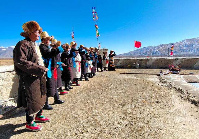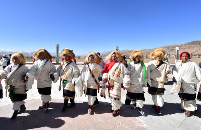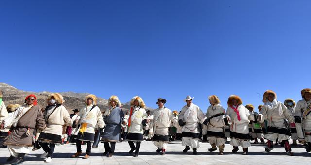 2月12日,拉薩市當(dāng)雄縣牧民跳起鍋莊舞。新華社記者 覺果 攝