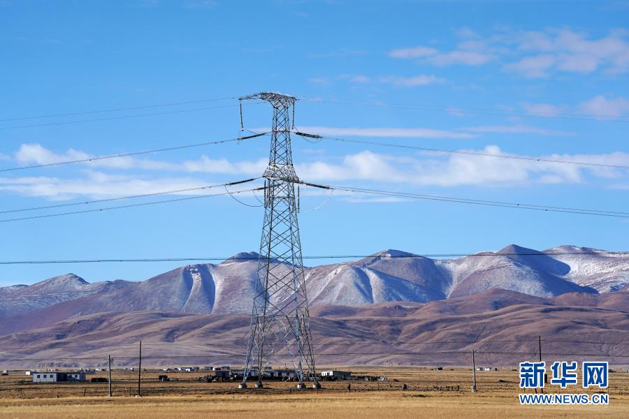 這是2020年11月29日在西藏阿里地區(qū)普蘭縣拍攝的西藏阿里與藏中電網(wǎng)聯(lián)網(wǎng)工程輸電鐵塔。新華社記者 詹彥 攝