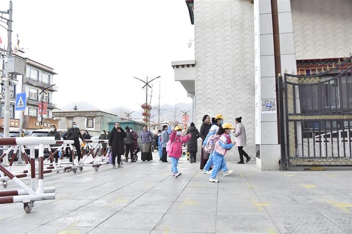 3月2日早上8時(shí)許,拉薩市第一小學(xué)門口熱鬧非凡。孩子們在家長的護(hù)送下背著書包、系著紅領(lǐng)巾,經(jīng)過體溫測量、消毒等疫情防控工作后,興奮地邁入校門。進(jìn)入校園后,爭著跟每一位老師問好,迫不及待地和許久不見的同學(xué)分享愉快的假期生活。“開學(xué)了,我又能和同學(xué)們一起上課、玩耍,還能見到喜歡的老師,心里特別高興?!弊楷斃放d奮地說,“假期我們?nèi)叶既コ啥加瓮媪?,我給班里的小伙伴們都帶了禮物,希望他們會喜歡。”
