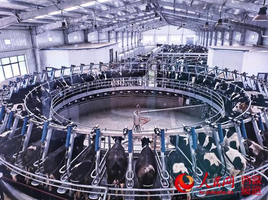 全自動(dòng)轉(zhuǎn)盤(pán)式擠奶車(chē)間。李海霞 攝