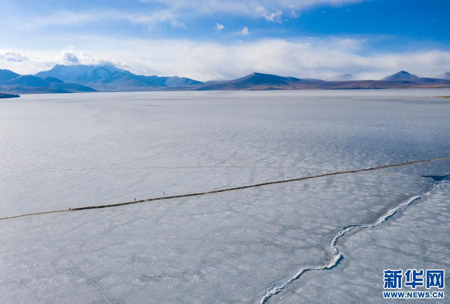 每年高原最冷的時(shí)刻,普莫雍錯(cuò)封凍成冰湖。