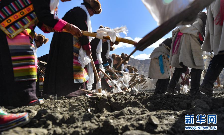 3月16日,克松社區(qū)居民在參加春耕儀式。新華社記者 晉美多吉 攝