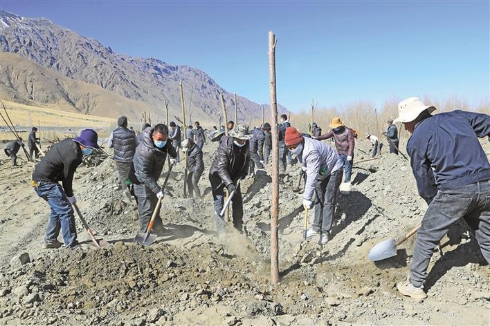 圖為山南市瓊結(jié)縣干部群眾開(kāi)展植樹(shù)造林活動(dòng)。