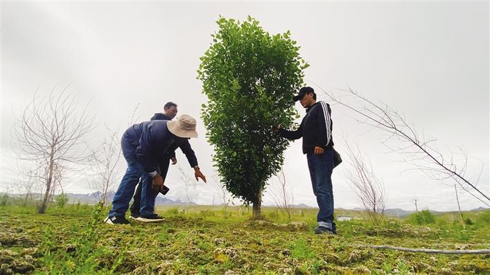 那段時間,索朗羅布整日待在枯樹叢中,尋找原因?!坝龅酱箫L天氣,小樹苗被連根拔起,加上我們的種植技術欠缺,日常護理不到位,草原鼠猖獗等原因,樹苗還沒長起來就死了?!彼骼柿_布回憶初次種樹的時候,有些心酸和無奈。