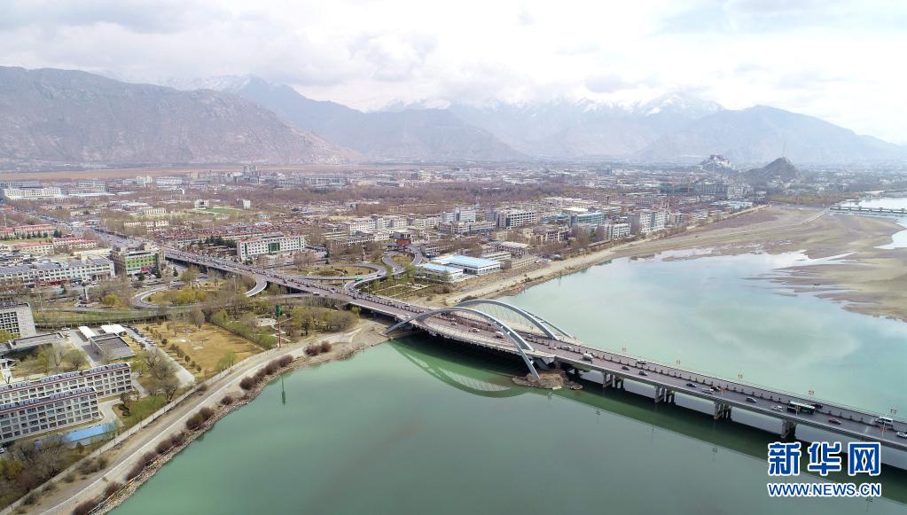 這是橫跨在拉薩河上的拉薩市區(qū)公路(2019年4月3日攝,無人機照片)。新華社記者 晉美多吉 攝