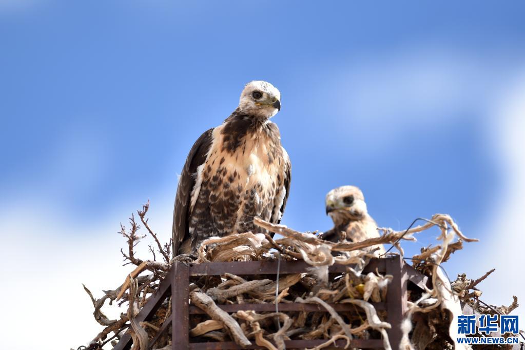 金雕在人工筑的鷹架上棲息。(新華社記者 覺(jué)果 攝)