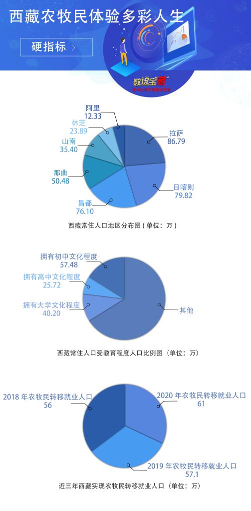 數(shù)據(jù)顯示,西藏和平解放70年來,常住人口從100多萬人增加到364.81萬人。2019年底,西藏74個(gè)貧困縣全部摘帽,62.8萬建檔立卡貧困人口全部脫貧。2020年,西藏地區(qū)生產(chǎn)總值突破1900億元,同比增長(zhǎng)7.8%。