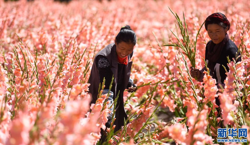 近年來,西藏拉薩市曲水縣才納鄉(xiāng)種植試驗(yàn)基地試種薰衣草、馬鞭草、鼠尾草及各類藥材,成為拉薩市最大的“經(jīng)濟(jì)花園”。2017年10月7日,拉薩市曲水縣才納鄉(xiāng)村民旦增卓嘎(左)和貢桑(右)在基地里采摘作物。新華社記者 普布扎西 攝