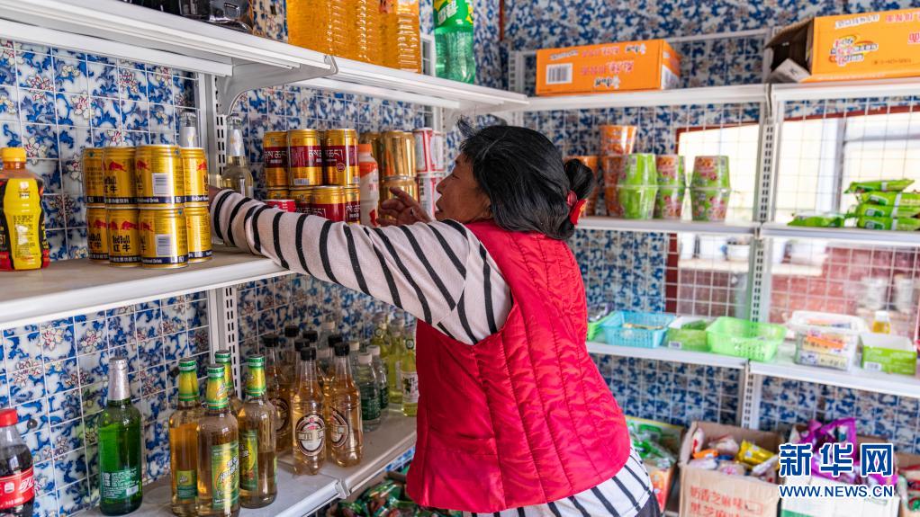 48歲的邊巴措姆患有大骨節(jié)病,個頭矮小,走路有些吃力。她說,黨和政府對大骨節(jié)病人特別關(guān)照。由于不能從事體力勞動,她在政府幫助下開辦了“電子商務(wù)站”,在院子一角的小房子里售賣一些日用品,自立自強。