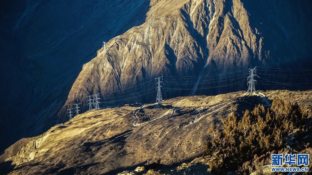 藏中聯(lián)網工程輸電線路(2017年12月20日攝)。新華社發(fā) (盧忠東 攝)