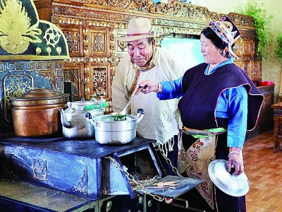 推開(kāi)格桑曲珍家的院門(mén),迎面映入眼簾的是坐北朝南、鑲嵌六扇大落地窗的藏式二層紅頂小樓,收拾得干凈整潔的院落透露出主人一家的勤勞。院子西邊的獨(dú)立衛(wèi)生間里,白底黃花的瓷磚鋪滿(mǎn)地面和墻面,太陽(yáng)能熱水器、上下水衛(wèi)浴設(shè)施一應(yīng)俱全。院子?xùn)|南角上占地十余平方米的廚房里,配齊了現(xiàn)代化的抽油煙機(jī)和電子灶具。