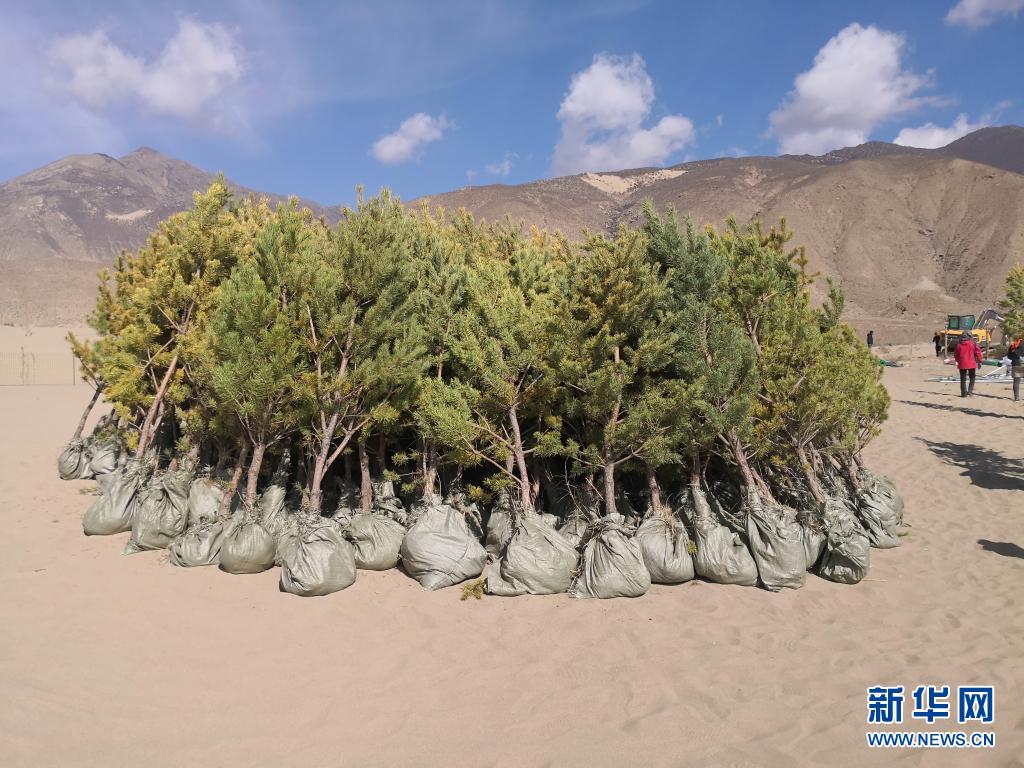 山南市江北“萬人萬畝”義務植樹造林所用的樹苗(2021年3月7日攝)。新華社發(fā)(資料照片)