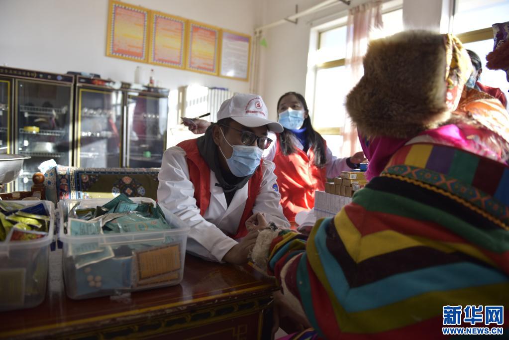 西藏尼瑪縣新時(shí)代文明實(shí)踐中心志愿者在尼瑪縣五保集中供養(yǎng)服務(wù)中心進(jìn)行義診(2021年2月3日攝)。新華社記者 格桑朗杰 攝