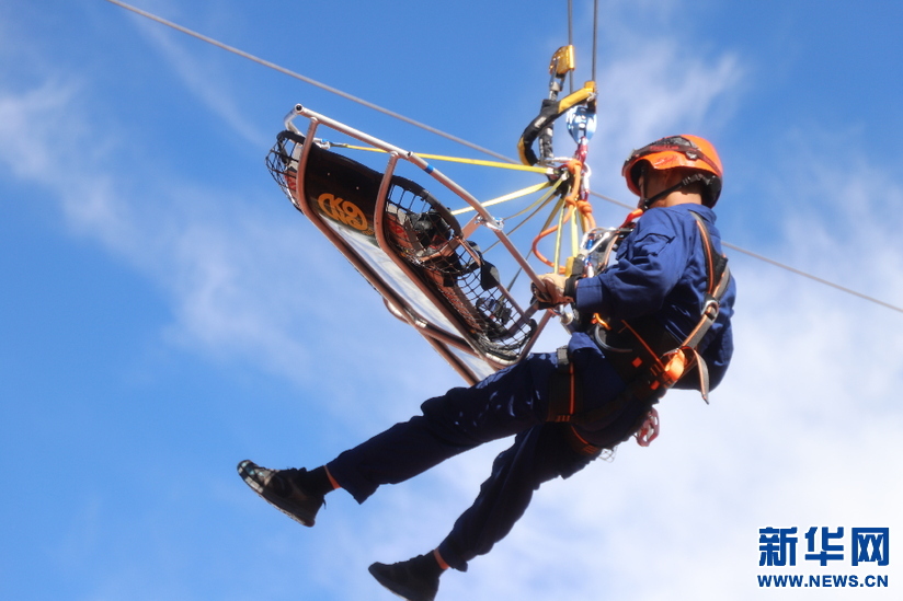 隊員正在進行繩索救援訓練(6月6日攝)。(新華網發(fā) 劉論剛攝)