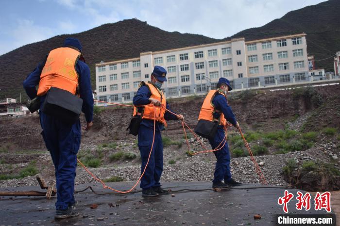 消防指戰(zhàn)員測量水位?!】ㄈ魠^(qū)森林消防中隊供圖