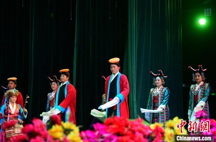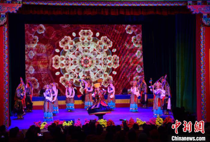 圖為拉薩市城關(guān)區(qū)娘熱民間藝術(shù)團帶來的歌舞《拉薩囊瑪》 貢嘎來松 攝