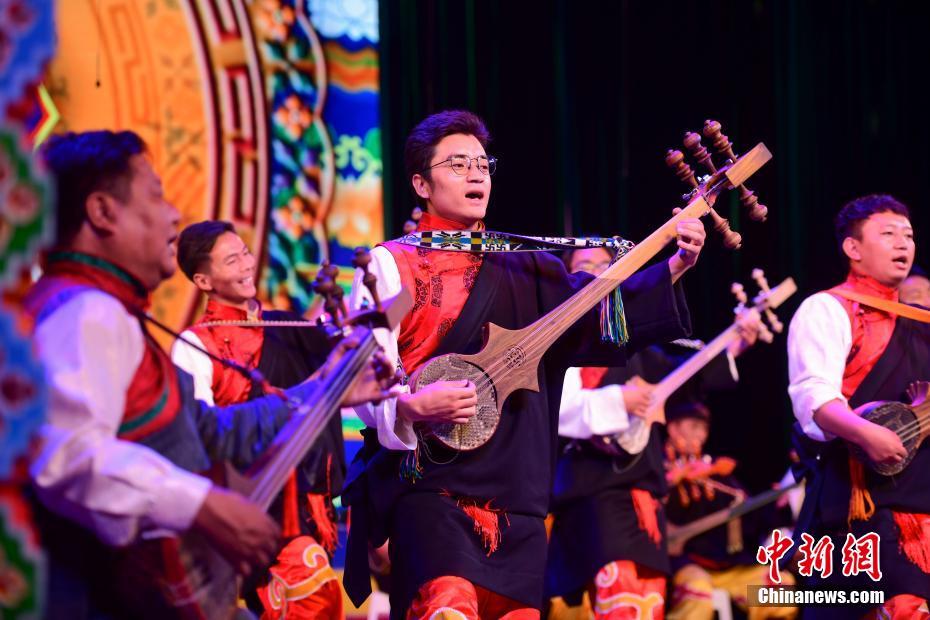6月12日,2021年“文化和自然遺產(chǎn)日”西藏非遺展演展示系列活動(dòng)在拉薩舉行?;顒?dòng)現(xiàn)場(chǎng)融入了文藝演出、非遺展演、非遺產(chǎn)品展銷等內(nèi)容,市民游客可親身體驗(yàn)非遺產(chǎn)品的制作過程。圖為在西藏自治區(qū)群眾藝術(shù)館演出的扎念彈唱《普伊桑林貢巴》。 中新社記者 貢嘎來松 攝