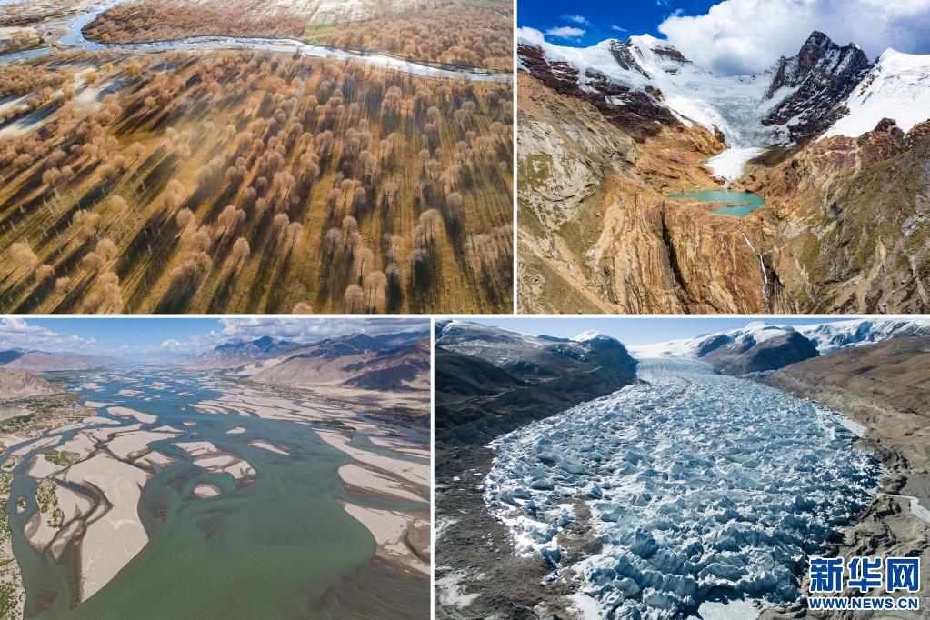拼版照片:左上:山南市雅江兩岸種植的樹林。新華社記者 普布扎西 攝