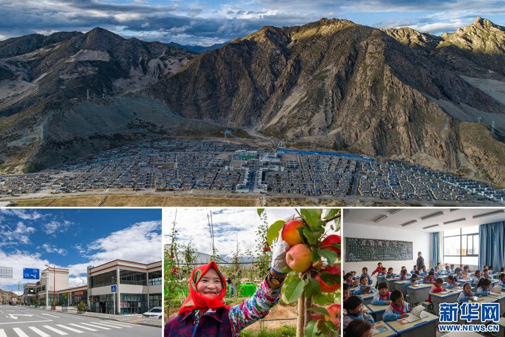 拼版照片:上:位于山南市貢嘎縣的森布日搬遷安置點(diǎn)。新華社記者 孫非 攝