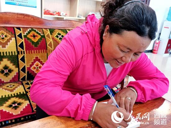 扎西梅朵在認真寫字。人民網(wǎng) 李海霞攝