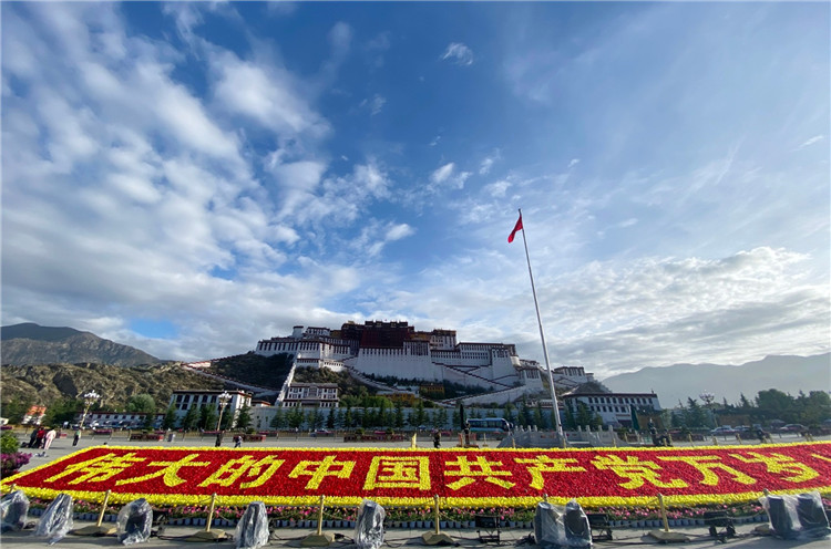 七一”前夕,走在拉薩街頭,慶祝建黨100周年的主題標(biāo)識(shí)隨處可見(jiàn),布達(dá)拉宮廣場(chǎng)裝點(diǎn)一新,宗角祿康公園花團(tuán)錦簇,處處洋溢著喜迎建黨百年的濃烈氛圍。為熱烈慶祝中國(guó)共產(chǎn)黨成立100周年,全市主次干道、門(mén)戶立交、公園、廣場(chǎng)等地大型主題雕塑、立體花雕、地面擺花為主要表現(xiàn)形式,營(yíng)造建黨百年的濃烈氛圍,美麗拉薩煥然一新,慶祝百年華誕。