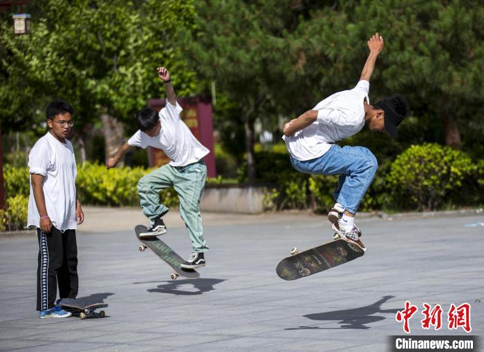 圖為幾位少年在林芝市福建公園內(nèi)玩滑板。(資料圖) 欒遠春 攝