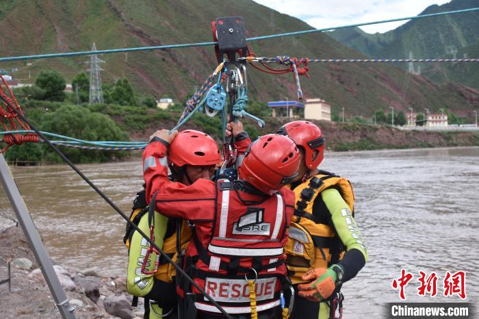 圖為山洪災(zāi)害防汛演練中進行翻舟自救科目。昌都市森林消防支隊 攝