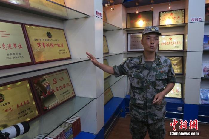 近日,中新社記者隨采訪團重走上世紀50年代中國人民解放軍進藏先遣連的入藏路線。圖為南疆軍區(qū)某合成團1連榮譽室,雕像是進藏先遣英雄連總指揮李狄三。 中新社記者 楊程晨 攝