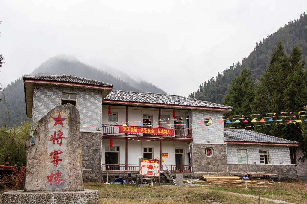 在易貢茶場,一座二層石木結(jié)構(gòu)的小樓前立著一塊石碑,上面用紅漆書寫著“將軍樓”3個大字。據(jù)介紹,這是當(dāng)年十八軍軍長張國華將軍在藏期間的辦公起居地之一。“部隊留下了10幢樓房和11幢平房,這是茶場最珍貴的紅色遺跡?!辈懦陶f。