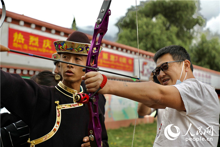 記者現(xiàn)場體驗(yàn)響箭。人民網(wǎng) 次仁羅布攝