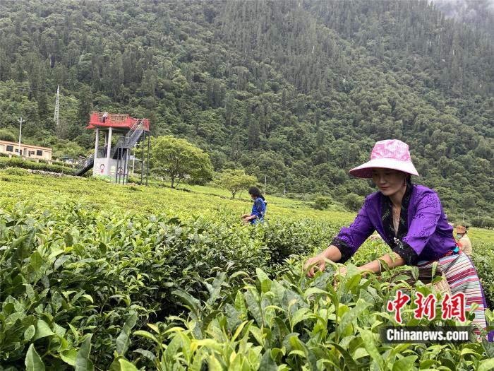 茶產(chǎn)業(yè)還給當(dāng)?shù)厝罕娫黾恿耸杖?。一個(gè)正在采茶的藏族姑娘告訴媒體團(tuán),采來的茶葉論斤計(jì)價(jià),如果采到最尖端的小嫩葉,每斤可換回150元。