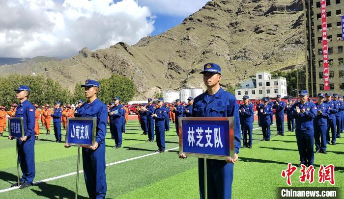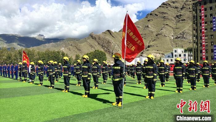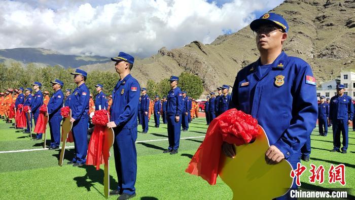 圖為西藏自治區(qū)消防救援總隊(duì)及各支隊(duì)代表共有200余人參加配發(fā)儀式。貢桑拉姆 攝