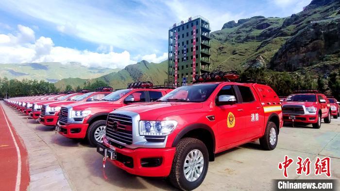 圖為應(yīng)急管理部消防救援局支援西藏自治區(qū)消防救援隊(duì)伍的91輛多功能勤務(wù)保障車(chē)及隨車(chē)器材。貢桑拉姆 攝