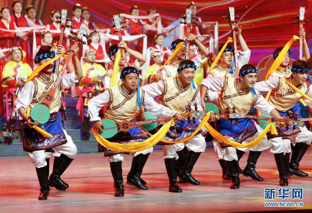 8月19日,慶祝西藏和平解放70周年文藝演出《西藏兒女心向黨》在拉薩西藏人民會堂精彩上演。新華社記者 黃敬文 攝