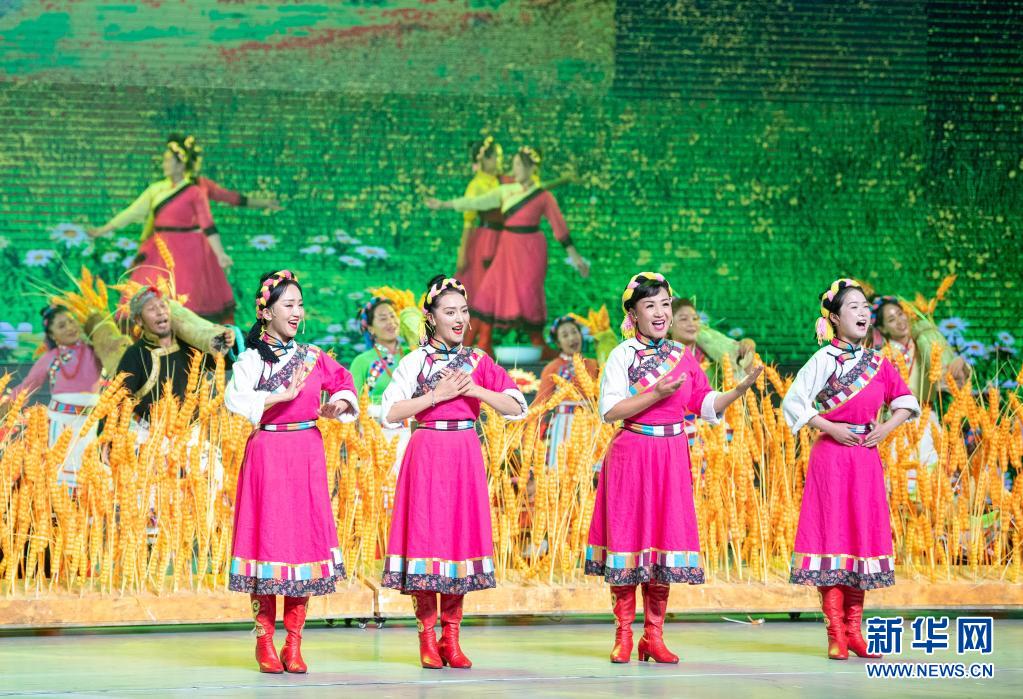 8月19日,慶祝西藏和平解放70周年文藝演出《西藏兒女心向黨》在拉薩西藏人民會堂精彩上演。新華社記者 翟健嵐 攝