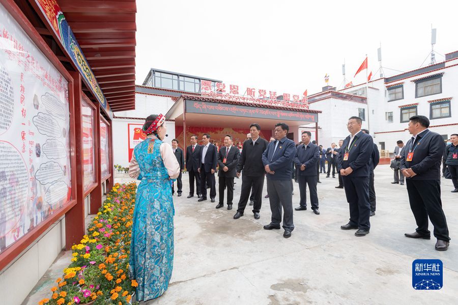 8月20日,中央代表團(tuán)山南、日喀則分團(tuán)帶著以習(xí)近平同志為核心的黨中央的深切關(guān)懷和全國(guó)人民的深情祝福,分別看望慰問(wèn)當(dāng)?shù)馗髯甯鹘绺刹咳罕姟_@是全國(guó)人大常委會(huì)副委員長(zhǎng)、中央代表團(tuán)副團(tuán)長(zhǎng)白瑪赤林率日喀則分團(tuán)來(lái)到日喀則桑珠孜區(qū)城北街道辦事處江洛康薩社區(qū),視察民族團(tuán)結(jié)創(chuàng)建和新時(shí)代文明實(shí)踐中心建設(shè)工作情況。新華社記者 翟健嵐 攝