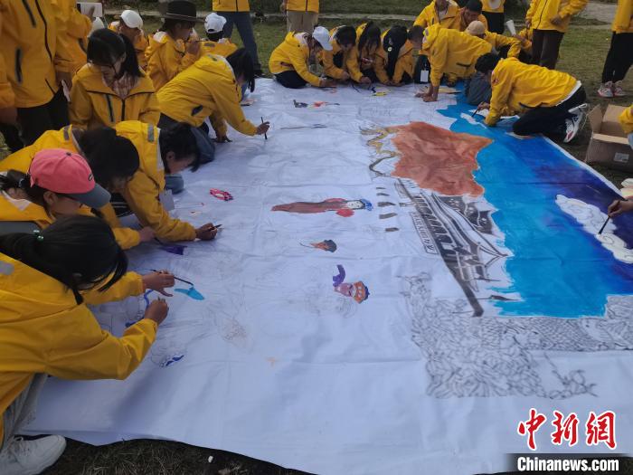 圖為學(xué)生們共繪一幅“中華民族一家親”。 西藏青少年實踐教育基地供圖