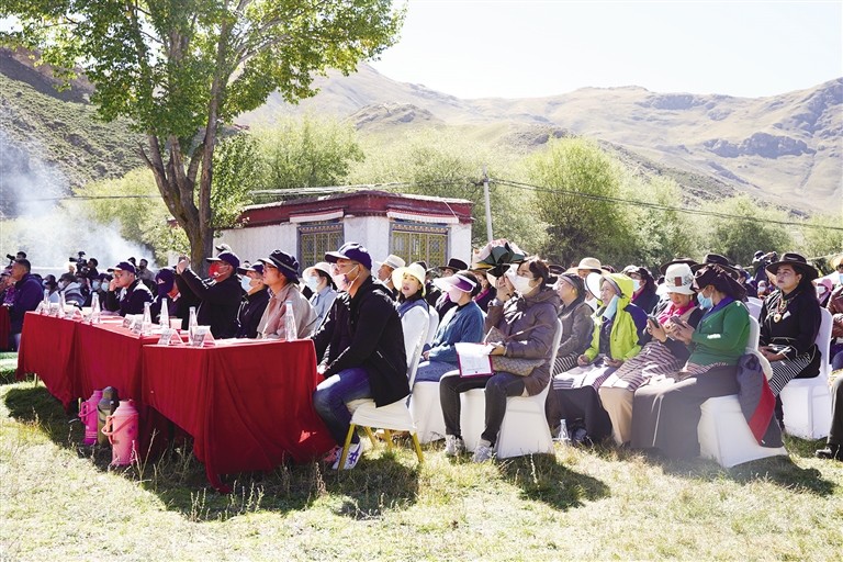 啟動(dòng)儀式結(jié)束后,還舉辦了第六屆覺(jué)木隆派藏戲文化旅游節(jié),邀請(qǐng)堆龍德慶區(qū)10支覺(jué)木隆藏戲表演隊(duì)表演特色劇目并為他們授牌。堆龍德慶區(qū)委常委、宣傳部部長(zhǎng)楊麗表示,本屆藏戲文化旅游節(jié),廣發(fā)“藏戲達(dá)人召集令”,邀請(qǐng)各派系、各唱腔達(dá)人表演特色劇目選段、共話藏戲,就是希望通過(guò)共建文化陣地、共享文化資源、共辦文化活動(dòng)的形式,凝聚合力,充分彰顯藏戲文化魅力,弘揚(yáng)優(yōu)秀傳統(tǒng)民族文化,保護(hù)和傳承藏戲文化遺產(chǎn),推動(dòng)藏戲文化深度發(fā)展?!昂軜s幸能參加此次活動(dòng),那嘎藏戲團(tuán)于1978年成立,那年我13歲,藏戲團(tuán)剛成立我就加入了,因?yàn)槲沂窒矚g藏戲,希望自己能將這種傳統(tǒng)藝術(shù)傳承下去?!苯衲?6歲的安多說(shuō)。