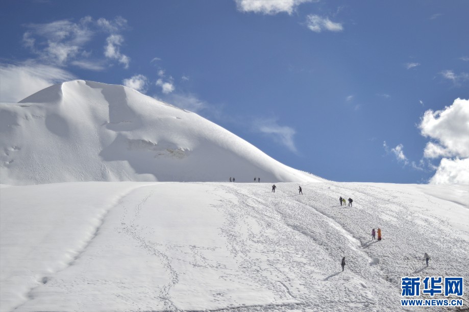 圖為游客攀爬廓瓊崗日冰川(9月14日攝)。新華網(wǎng) 貢桑央吉攝(實習生)
