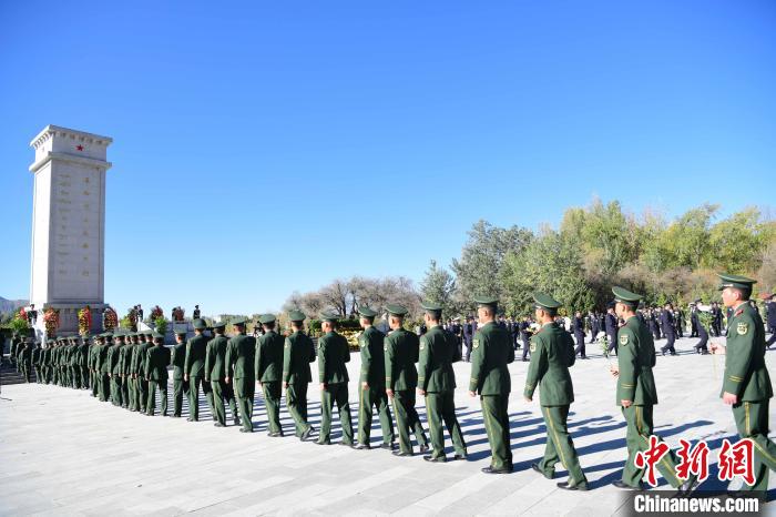 秋日的拉薩碧空如洗,松柏環(huán)繞的拉薩烈士陵園莊嚴肅穆,藍天映襯下烈士紀念碑巍峨聳立。9時30分,西藏自治區(qū)領(lǐng)導(dǎo)和各族各界群眾代表齊聲高唱《中華人民共和國國歌》。隨后,全場肅立,向烈士默哀。