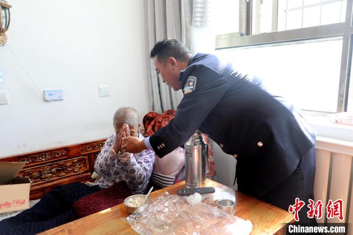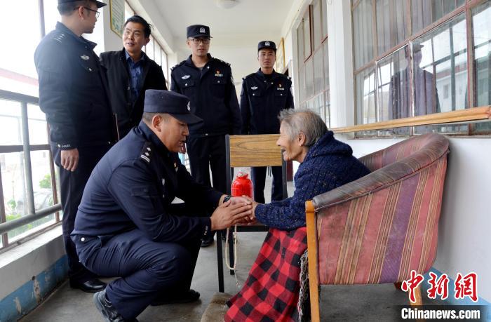 圖為敬老院老人向民警表達謝意。格熱 攝