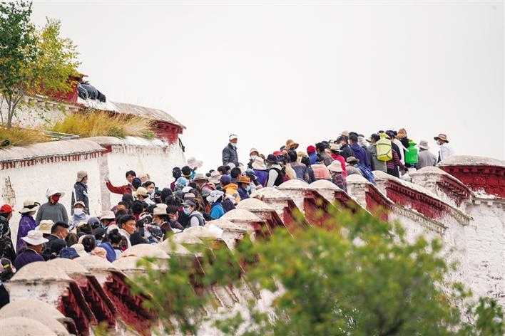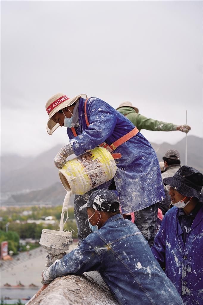 隨著布達拉宮“粉刷季”開始,很多市民群眾自發(fā)前往布達拉宮,加入“粉刷大軍”的隊伍。