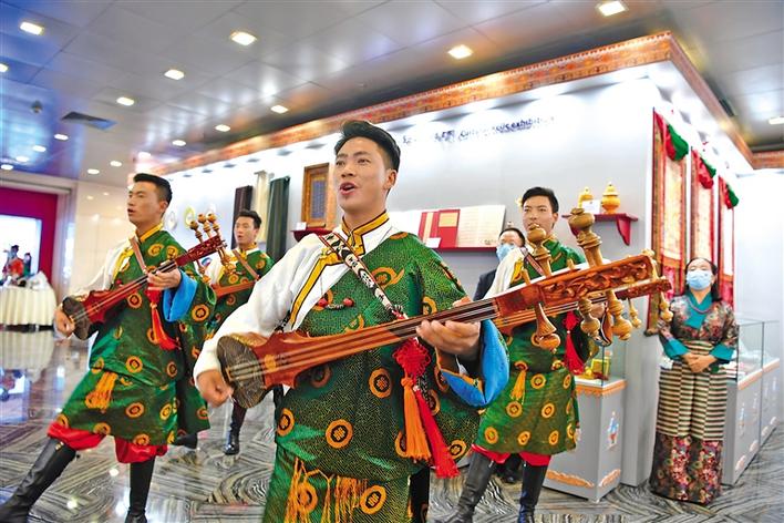 清朝道光皇帝冊封十一世達(dá)賴?yán)锝饍?、《中央人民政府和西藏地方政府關(guān)于和平解放西藏辦法的協(xié)議》等一件件歷史文物,充分證明了西藏自古以來就是祖國不可分割的一部分。藏文書法、傳統(tǒng)手工藝和酥油茶等高原飲食文化,充分展示了西藏與祖國各地在漫長歷史長河中的各民族廣泛交往、全面交流、深度交融。