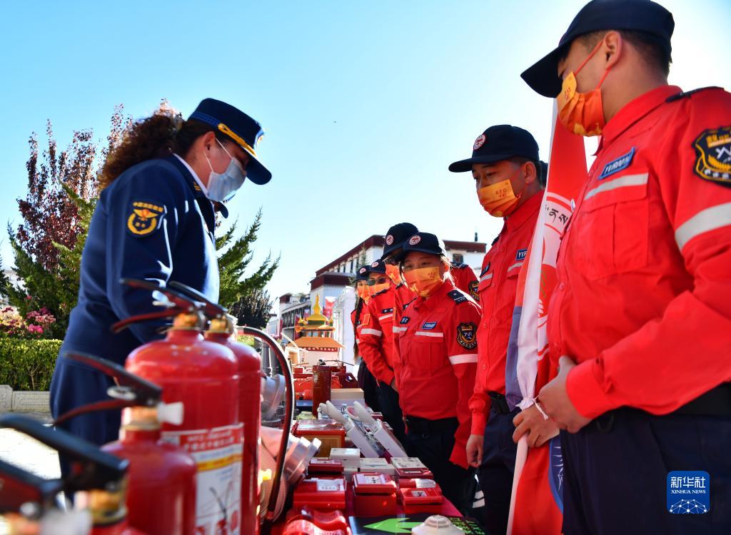 11月4日,工作人員向青年志愿救援隊介紹消防設(shè)備。新華社記者 晉美多吉 攝