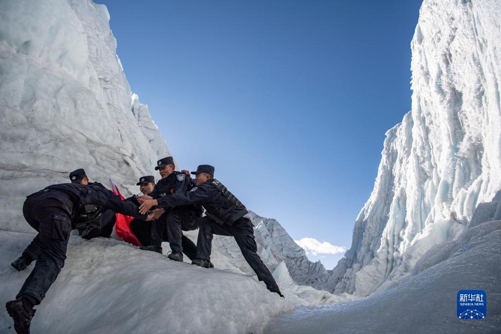 守護(hù)國土是神圣的使命。民警們常在中國和不丹的邊境地區(qū)巡邏,那里冰川密布,碎石路下往往暗藏冰裂縫。巡邏途中,民警們會熱心幫助前來求助的牧民群眾?!班l(xiāng)親們有困難總是會想到我們?!泵窬⑼酱胝f。